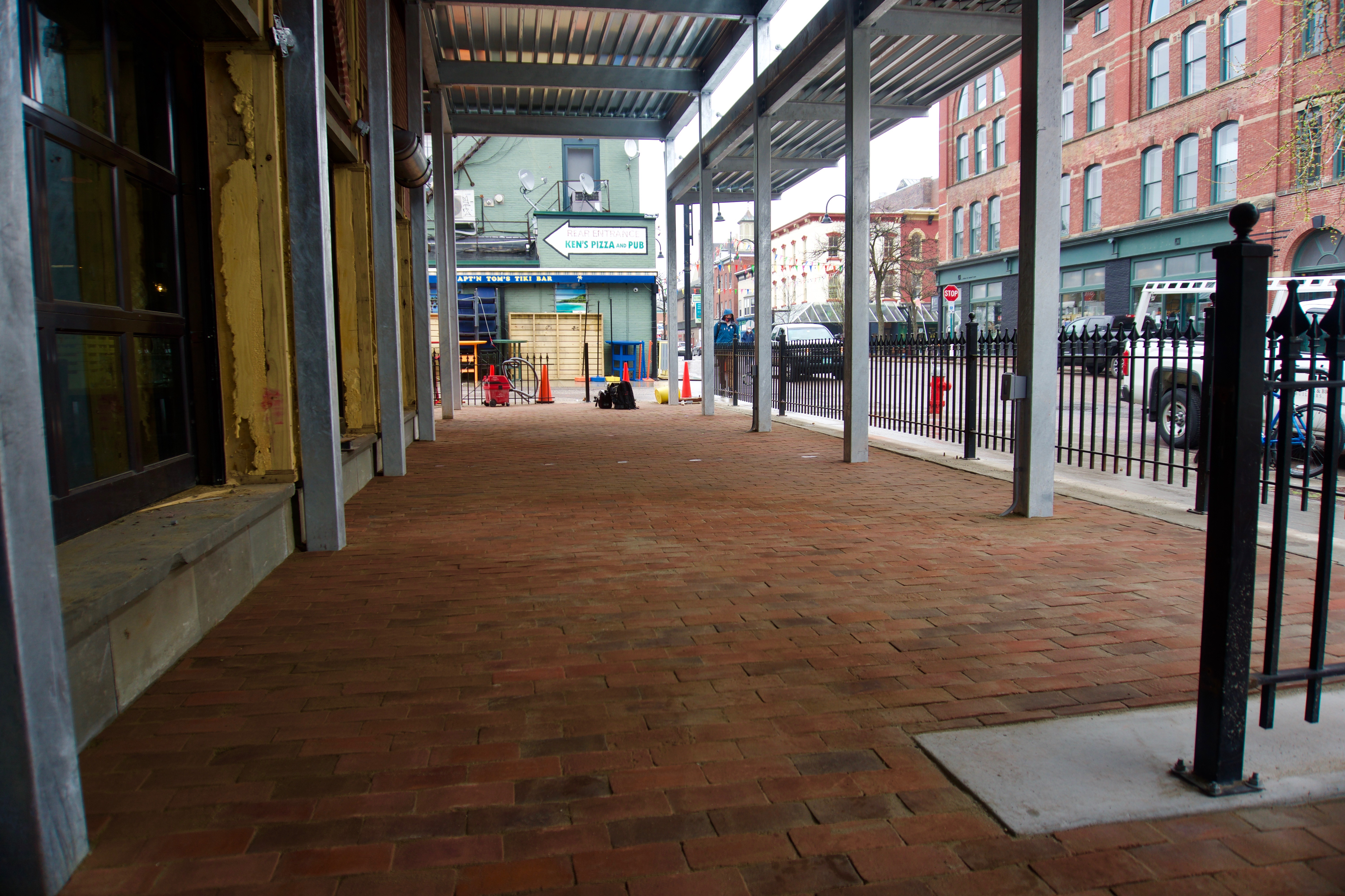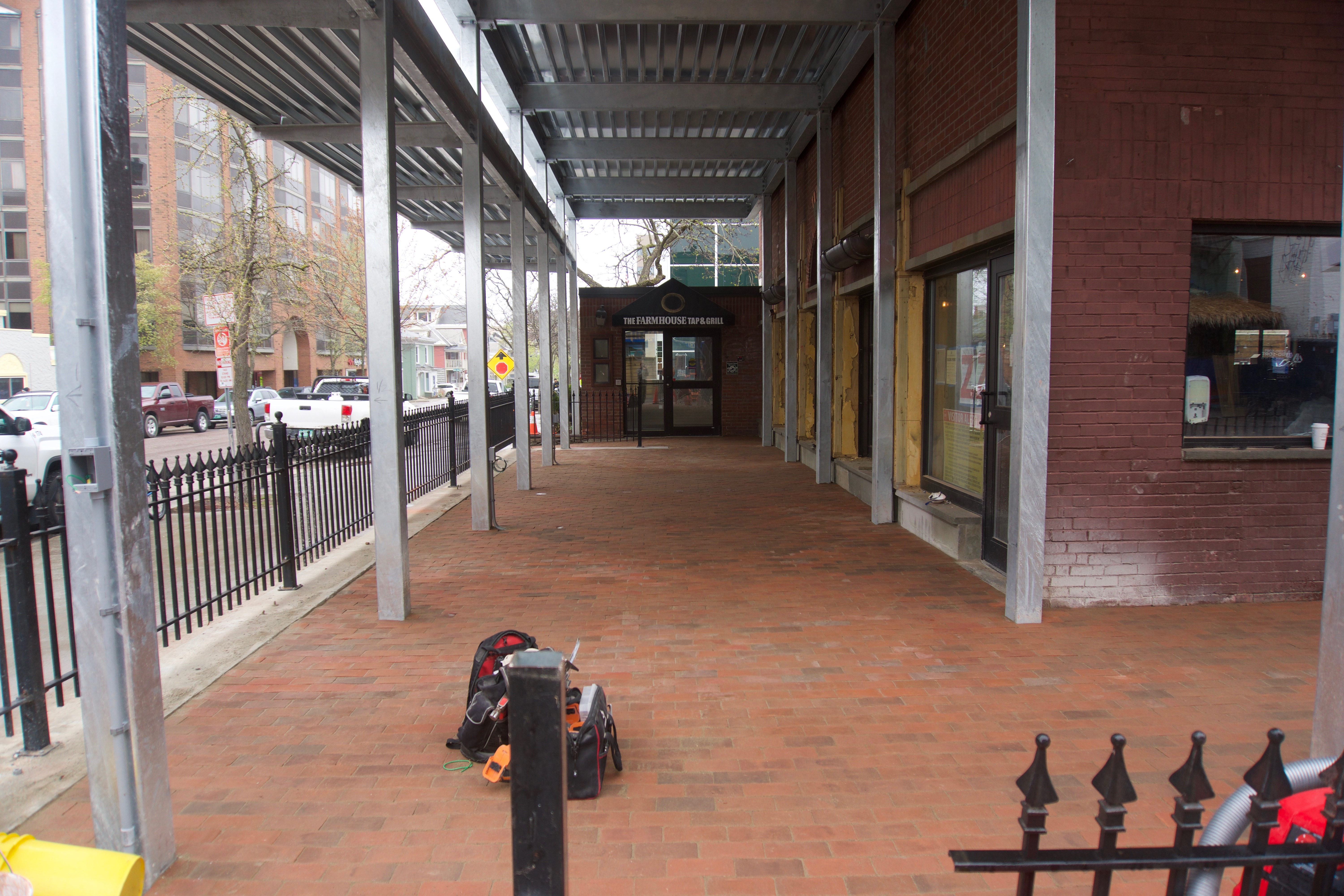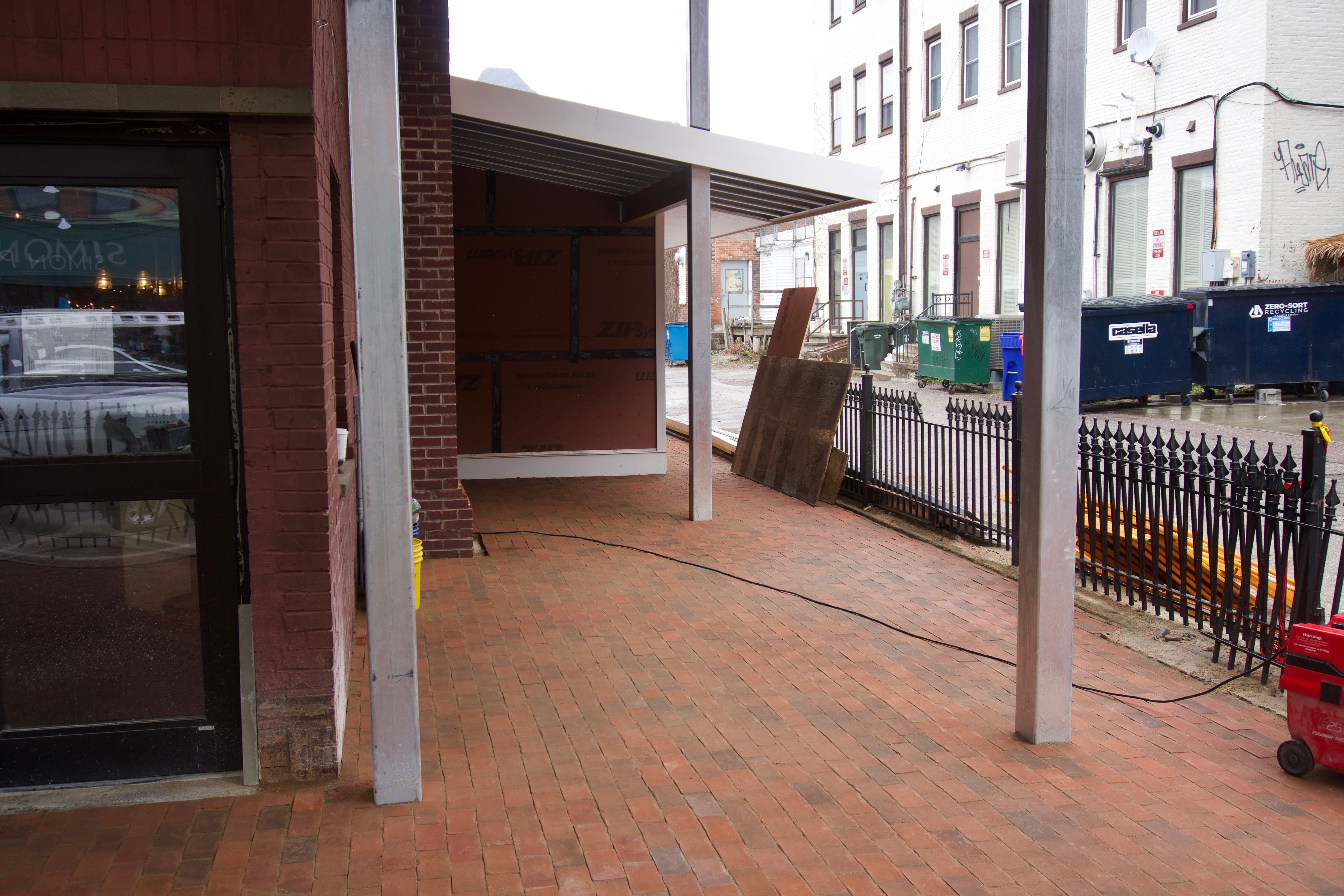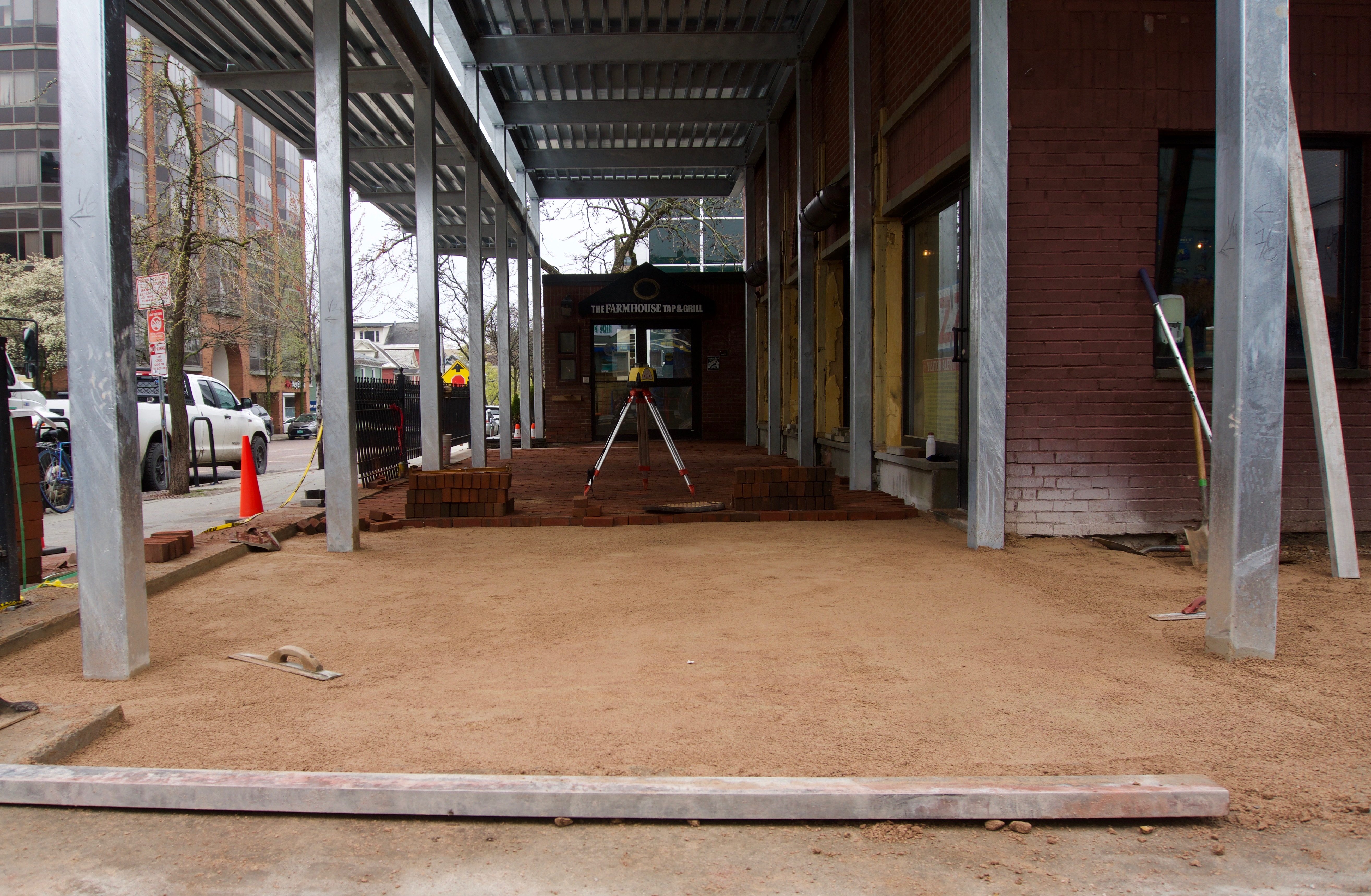 After demolishing the existing concrete paver patio, we performed the concrete work for new structures. This included the excavation, forming, and pouring of the new beer cooler slab, along with footings and piers for the new steel canopy. After the canopy and cooler were constructed by others, we installed the clay brick patio.